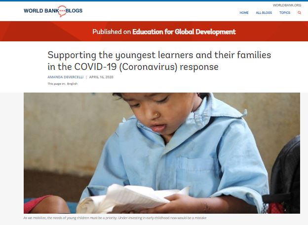 To view the blog post : https://blogs.worldbank.org/education/supporting-youngest-learners-and-their-families-covid-19-coronavirus-response